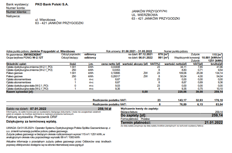 U nas nie musisz. W grudniu 2021, czyli w najzimniejszym miesiącu roku, 4-osobowa rodzina mieszkająca na osiedlu Wierzbowa Kraina zapłaciła za gaz 259,14 zł. Koszt obejmował ogrzewanie wraz z ciepłą wodą użytkową.
